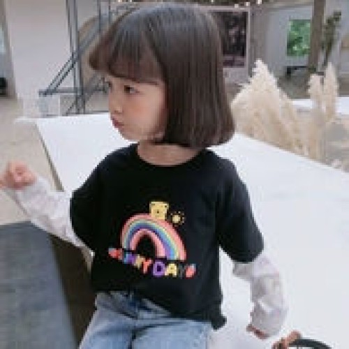 儿童假两件t恤宝宝套头打底衫女童长袖上衣童装洋气春 - Παιδικά|童装